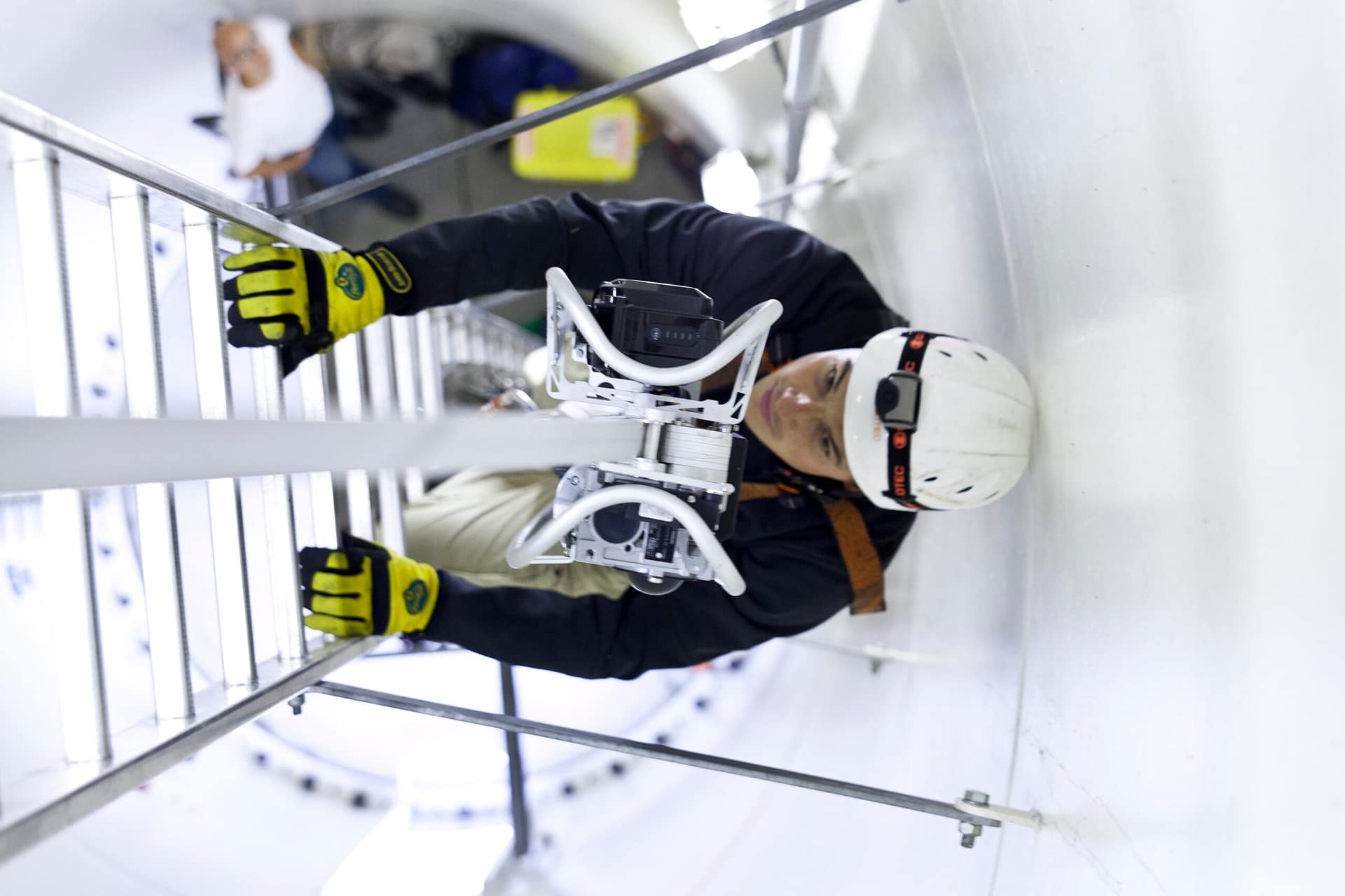 FIXATOR a développé EXOLIFT un système d’aide à la montée sur échelle permettant à un technicien de réaliser des opérations de maintenance à l’intérieur d’une éolienne.